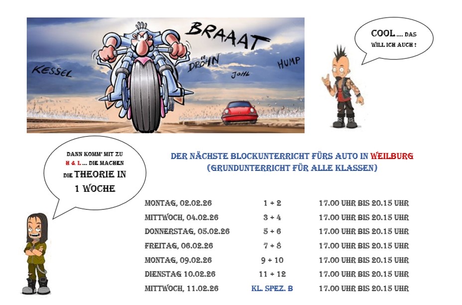 Die klassenspezifischen Unterrichte für Zweiräder und Traktor (Klasse L) werden individuell geplant und festgelegt.